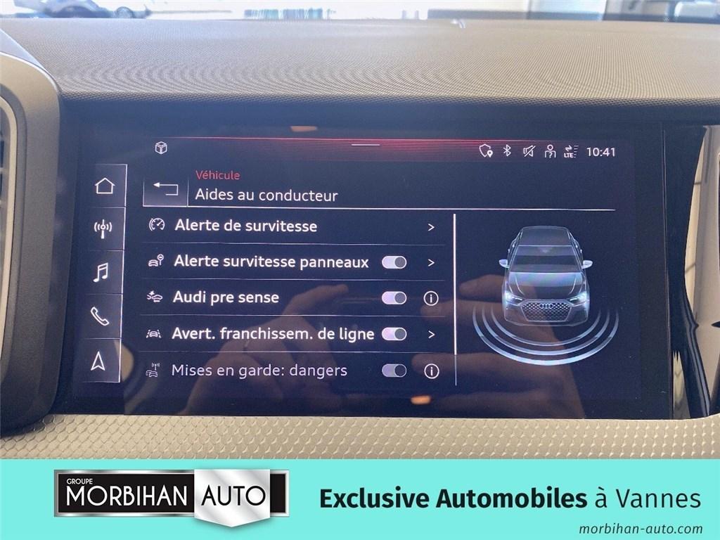 Accoudoir central avAffichage de contrôle de pression des pneusAirbags latéraux à l'av et système d'airbags de têteAppel d'urgence audi connect et servicesApplications décoratives étendues en laque diamant gris argent dans l'insert du diffuseur d'air et de la console centrale ainsi que dans la poignée de la commande intérieure de verrouillage des portièresApplications décoratives étendues sur le tableau de bord façon verre en noir, de l'écran couleur mmi touch jusqu'aux triangles de portières av façon verre en noirApplications décoratives structure polygone en laque fine ardoiseArches de toit et pavillon de couleur contrastée gris manhattanAudi parking system arAudi pre sense frontAudi smartphone interfaceAvertissement de franchissement de ligneBoîtiers de rétroviseurs extérieurs couleur carrosserie sauf blanc cortinaCâbles de recharge pour téléphone portableCalandre en noir titaneChâssis standardCiel de pavillon en tissu gris titaneClé à fréquence radioClimatisation automatique bi-zoneDétecteur d'occupation des siègesDétecteur de pluie et de luminositéDiffuseur ar en noir titane matDigital cockpitDossier de banquette ar rabattableEclairage intérieurEncadrement de calandre en argent aluminium matEssuie-glace ar à intermittenceFeux ar rougesFeux de brouillard arFrein à main manuel en revêtement plastiqueInterface bluetoothInterface usb de type aJantes en aluminium coulé style 5 branches en v partiellement polies, 7,5jx17," pneus: 215/45 r17Lève-vitres électriques à l'av et à l'arLèvres de becquet latérales à l'av en noir mat grainéLimiteur de vitesseMmi radio plusMoulures de seuil avec insert en aluminium à l'avPack cuir - accoudoirs de portières en matériaux synthétiquesPack rangement - boîte à gants verrouillable - vide-poches au dos des sièges, côtés conducteur et passager av - compartiment sous le siège av droitPare-brise en verre athermique avec bande grise sur la partie supérieure du pare-brisePhares et feux ar à led, avec clignotants dynamiques à arPréparation pour la navigation mmi plus et audi virtual cockpitPrises d'air latérales à l'av en noir mat grainé avec encadrement c en noir titaneRégulateur de vitesseRétroviseur intérieur jour/nuit manuelRétroviseurs extérieurs réglables, dégivrants et rabattables électriquementSellerie tissu novum pour sièges sport à l'avSet de réparation pour pneusSièges av sportSièges av sportSièges conducteur et passager av réglables en hauteurSystème de lecture des panneaux de signalisation par caméraSystème start & stop avec récupération d'énergie au freinageTapis de sol av/arTrousse de secours avec triangle de présignalisationVitres athermiquesVolant en cuir style 3 branches avec multifonctions