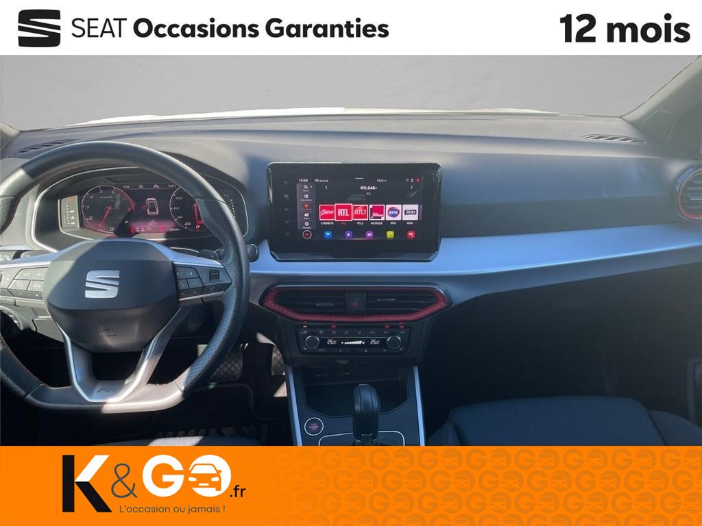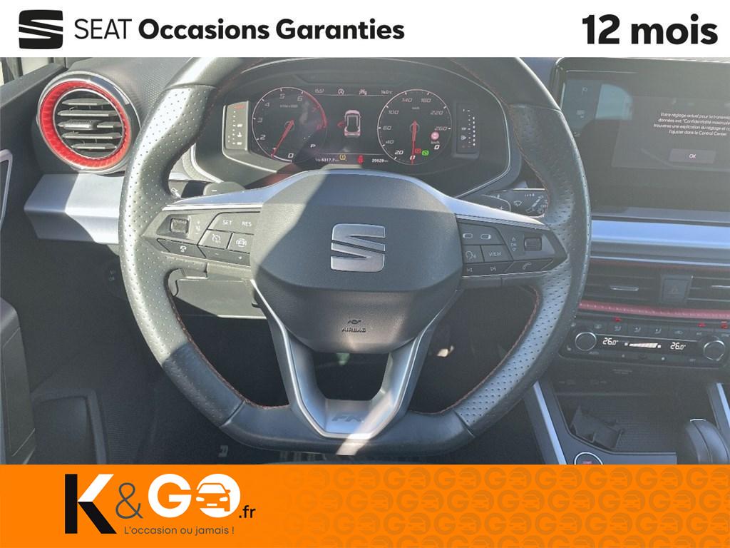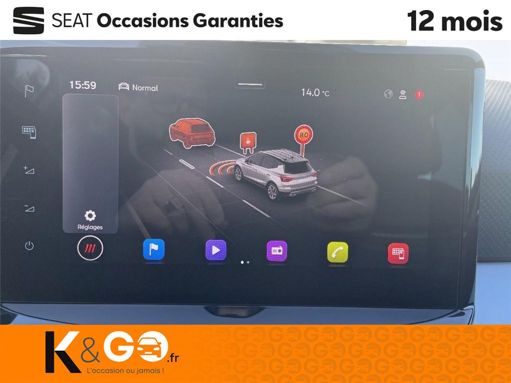 2 fixations isofix + top tether intégrées aux sièges ar4 vitres électriques à impulsion avec sécurité enfant6 hpAbsActivation automatique des essuie-glacesAérateurs latéraux rétro-éclairésAide au démarrage en côte (hhc)Aide au maintien dans la voieAide au stationnement arAir conditionnéAirbags frontaux, latéraux et rideaux avAlerte de non-bouclage des ceintures av/arAllumage automatique des projecteurs avec fonction 'follow-me-home'Anti-patinage électronique (asr)Antidémarrage électroniqueAppel d'urgence ecallBanquette ar rabattable 2/3-1/3BluetoothBouclier av "adventure" avec projecteurs antibrouillard ledCalandre spécifique fr avec contour gris cosmiqueCiel de pavillon noirConnectivity box avec chargeur à inductionConsole centrale et poignées de portes av avec applications gris aluminiumContours de vitres anodisésContrôle de pression des pneusDesign "streamline" sans feux antibrouillard à l'avDétecteur de fatigueDétection de sous-gonflage des pneumatiques électroniqueDifférentiel électronique xdsDigital cockpitDouble sortie d'échappement chroméeDrive profileEclairage d'ambiance au niveau des portières et de la connectivity boxEclairage de plancher intérieur et console centraleEclairage de plaque d'immatriculation à ledEntourages d'aérateurs centraux et latéraux gris satinés avec inserts rouge laserEscFeux ar à led avec signature lumineuse triangulaireFront assist avec détection des piétons et des cyclistesFull link (mirrorlink + android auto + apple carplay)Garantie 2 ans, kilométrage illimitéInserts de custode en "x" anodisésInserts de planche de bord, de portières et de console centrale gris aluminiumJantes alliage 17" "performance"Keyless accessKit anti-crevaisonLampes de lecture avLampes de lecture av (2x)Levier de frein à main cuirLimiteur de vitesseLogos "seat" satinés av/ar et sur le volantOrdinateur de bord avec affichage de la température extérieurePack design frPack full ledPack rangementPack springPack vision+Palettes au volantPare-chocs couleur carrosseriePare-soleil avec porte-carte côté conducteurPare-soleil conducteur avec miroir de courtoisiePare-soleils avec miroir de courtoisiePoignées de portes couleur carrosseriePommeau de levier de vitesse cuir véritablePrise usb-c 2xRadio numérique dabRails de toit anodisésRails de toit longitudinauxRégulateur de vitesseRétroviseurs extérieurs de coques couleur contrastanteRétroviseurs extérieurs réglables électriquement intégrant les répétiteurs de clignotants latérauxSeat connect media & internetSeat drive profileSellerie textile bleue le mans tri-matière avec surpiqûres rougesSeuils de porte siglés ''fr''Siège conducteur réglable en hauteurSiège passager av réglable en hauteurSièges confortSignature "arona" manuscrite sur le hayonSystème audioSystème de navigation europe avec écran tactile couleur 9,2"Tapis de sol textile av/arVerrouillage centralisé avec 2 télecommandesVitres ar surteintéesVolant sport multifonction en cuir nappa perforé avec surpiqûres rouges et logo "fr"