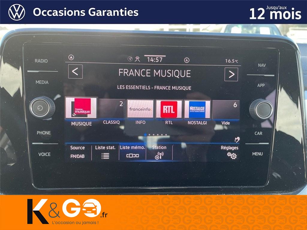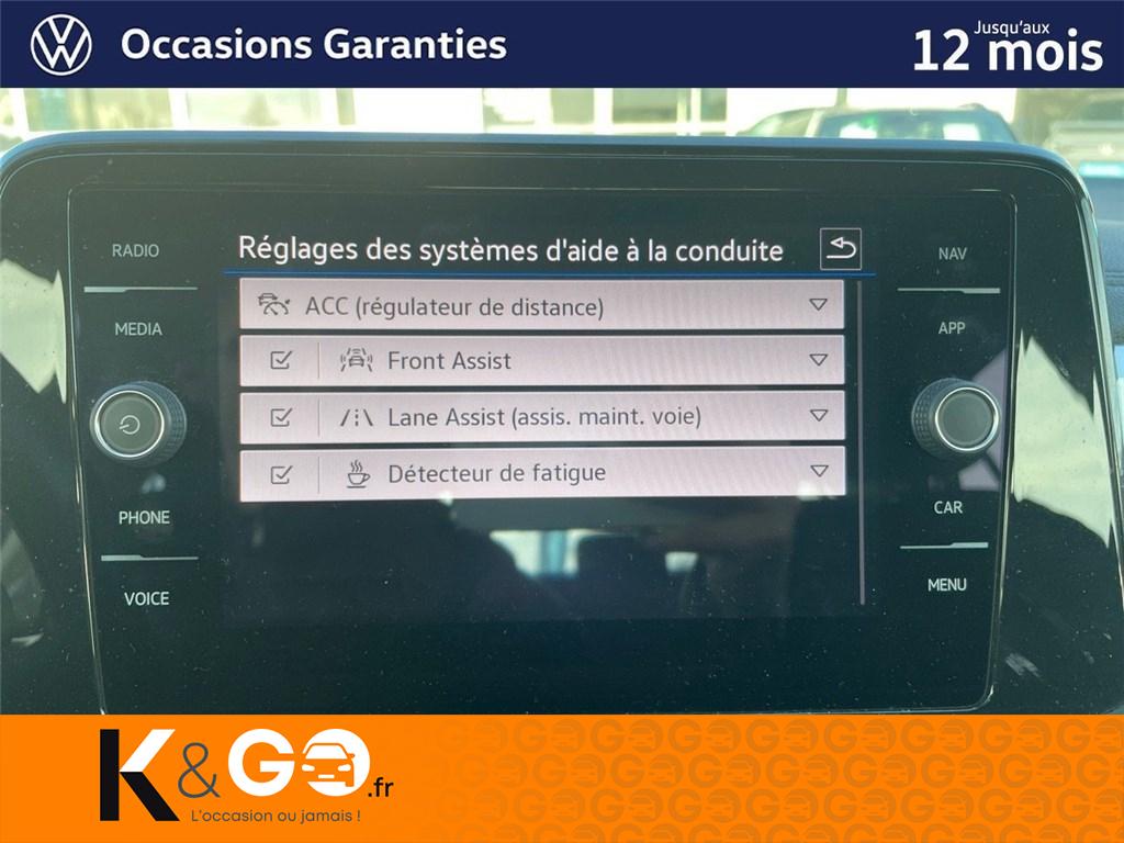 2 interfaces usb-c av et 2 ports usb-c de recharge arAcc : le régulateur de vitesse adaptatif avec limiteur de vitesse (acc)Accoudoir central à l'av réglable en longueur, avec compartiment de rangementAide au démarrage en côte "hill-hold"Airbags frontaux avAirbags latéraux avAirbags rideaux av/arAlerte de perte de pression des pneusAntidémarrage électroniqueApp-connect sans filApplication décorative gris etain métallisé pour tableau de bordAppuis-tête ar (3) et ceintures de sécurité 3 points (3) sur la banquette arAvertisseur de non bouclage des ceintures de sécurité av et arBoîte de rangement sous le siège passager avCâble adaptateur usb-c vers usb-aCatadioptres dans toutes les portièresCeintures de sécurité av 3 points, à enrouleur avec prétensionneurs, réglables en hauteurClimatisation automatique tactile climatronic bi-zone avec filtre anti-allergène, réglableCompartiment de rangement pour manuel d'utilisation sous siège conducteurCorrecteur électronique de trajectoire esp, système d'antiblocage de roues abs, edl, edtc,Diffuseur ar avec insert argentDigital cockpit : combiné d'instruments digital 8"Dynamic lane assistEssuie-glaces av/ar avec commande d'intermittence et lave-glaceFatigue detection : système de détection de fatigue du conducteur qui analyse le comportement duFeu ar de brouillardFeux ar de brouillard des 2 côtés, feux de recul des 2 côtésFeux ar rouge clair à ledFrein de stationnement électromécanique avec fonction d'immobilisation en pente "auto hold" etFront assist avec fonction de secours en ville et détecteur de piétonInsert argent sur le haut des vitresInterface bluetooth pour téléphone mains libresJantes en alliage léger 16'' chesterKeyless access: système de verrouillage/dévérrouillage sans clé et démarrage avec bouton start/stopKit de dépannage : compresseur 12 v et produit d'étanchéité de pneuLampes de lecture av/arLane assist - assistant au maintien dans la voie avec correction de trajectoireLight assist : régulation automatique des feux de routeOeillets d'arrimage isofix (dispositif pour fixation de 2 sièges-enfants sur la banquette ar)Pack visibilitéPare-chocs couleur caissePark assist - assistance au stationnementPlancher de coffre à bagages réglable en hauteur et amoviblePlancher du coffre modulable, rabattable et entièrement amoviblePoignées de portes et rétroviseurs extérieurs dans la teinte de la carrosseriePréparation pour "vw connect" et "vw connect plus"Projecteurs à led plus : projecteurs led haute performance avec feux de jour à ledProjecteurs antibrouillard av avec éclairage statique d'intersectionProjecteurs av led et feux de jour circulaires à ledRampes de pavillon noiresRéception de radio numérique dab+Rétroviseur extérieur droit convexeRétroviseur extérieur gauche asphériqueRétroviseurs extérieurs réglables, rabattable et dégivrant électriquement, à mémoireSellerie en tissu "tracks uni new" noir titane / grisSellerie en tissu tracks 2Sièges av réglables en hauteurSystème audio & infotainment ready 2 discoverSystème d'aide au stationnement av et arSystème start/stop avec récupération d'énergie au freinageTableau de bord mousséTapis de sol av/arTémoin d'alerte pour niveau de liquide lave-glaceVitres athermiques teintées vertesVitres athermiques teintées vertes sur les côtés et à arVolant cuir multifonctions capacitif